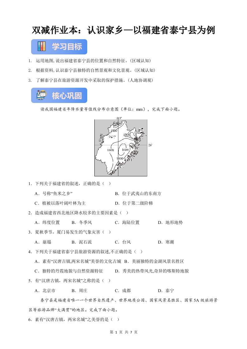 首页 > 全部 > 同步练习 > 作业7.7—认识家乡—以福建省泰宁县为例(原卷版)1
