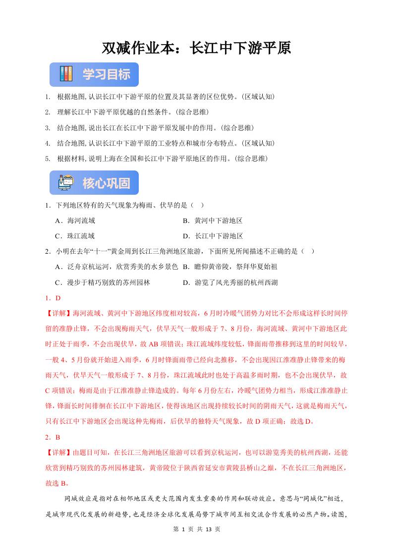 首页 > 全部 > 同步练习 > 作业7.4—长江中下游平原(解析版)8