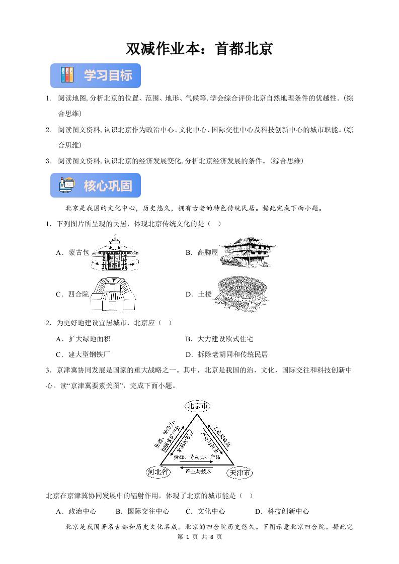 首页 > 全部 > 同步练习 > 作业7.1—首都北京(原卷版)13