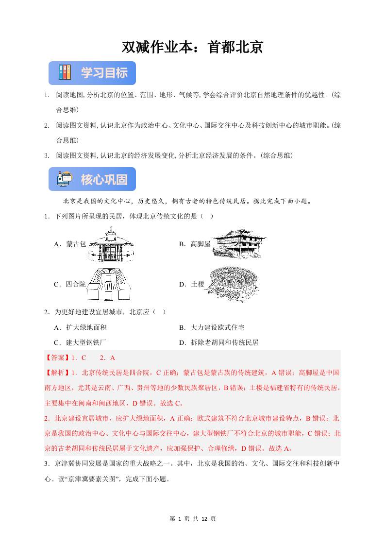 首页 > 全部 > 同步练习 > 作业7.1—首都北京(解析版)14