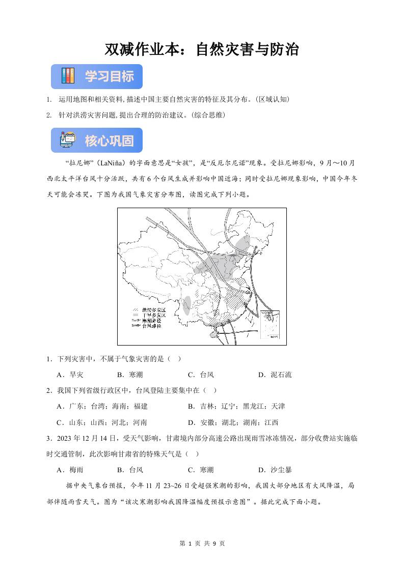 首页 > 全部 > 同步练习 > 作业6.1—自然灾害与防治(原卷版)16