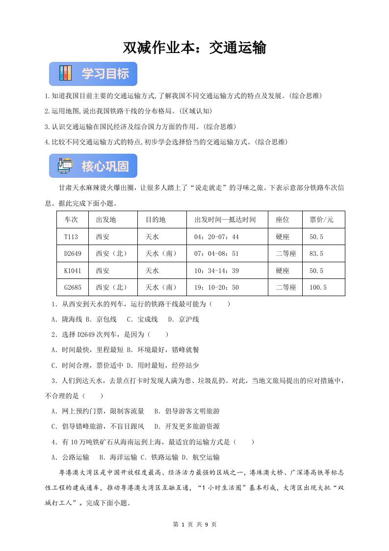 首页 > 全部 > 同步练习 > 作业5.5—交通运输(原卷版)18