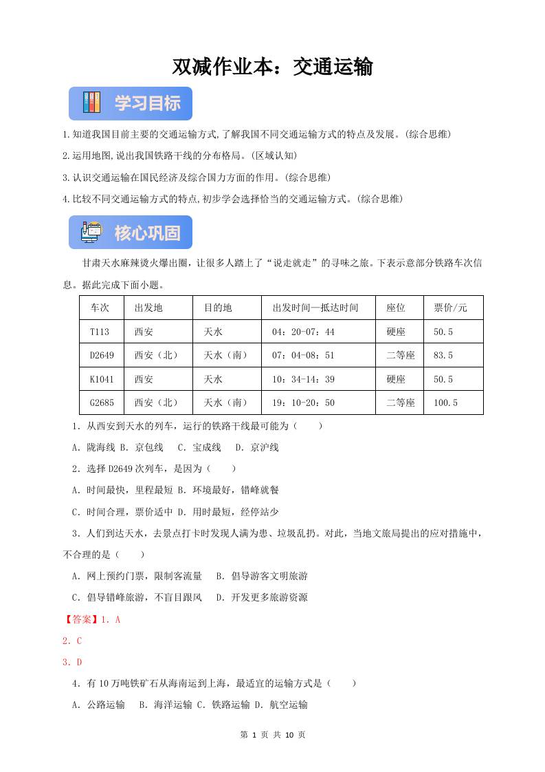首页 > 全部 > 同步练习 > 作业5.5—交通运输(解析版)19