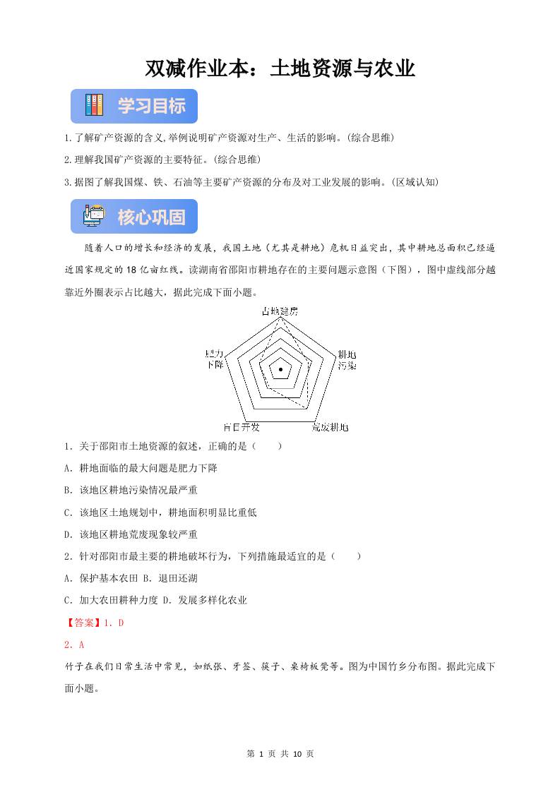 首页 > 全部 > 同步练习 > 作业5.2—土地资源与农业(解析版)23