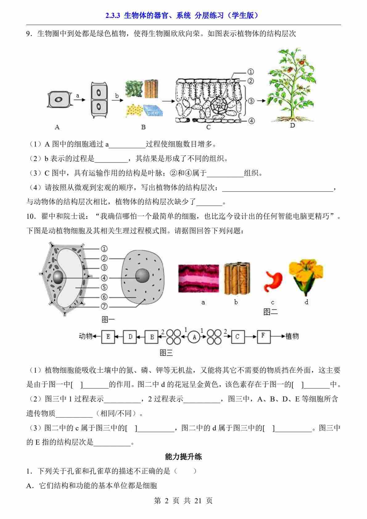 首页 > 全部 > 一课一练 > 2.3.3 生物体的器官、系统(分层练习)