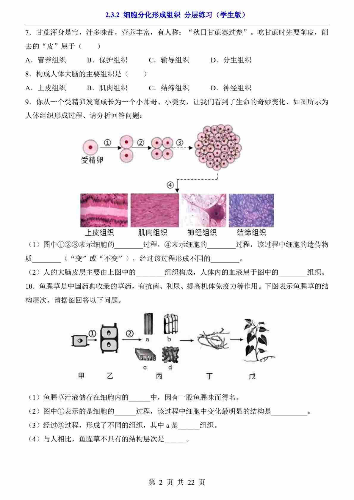 首页 > 全部 > 一课一练 > 2.3.2 细胞分化形成组织(分层练习)