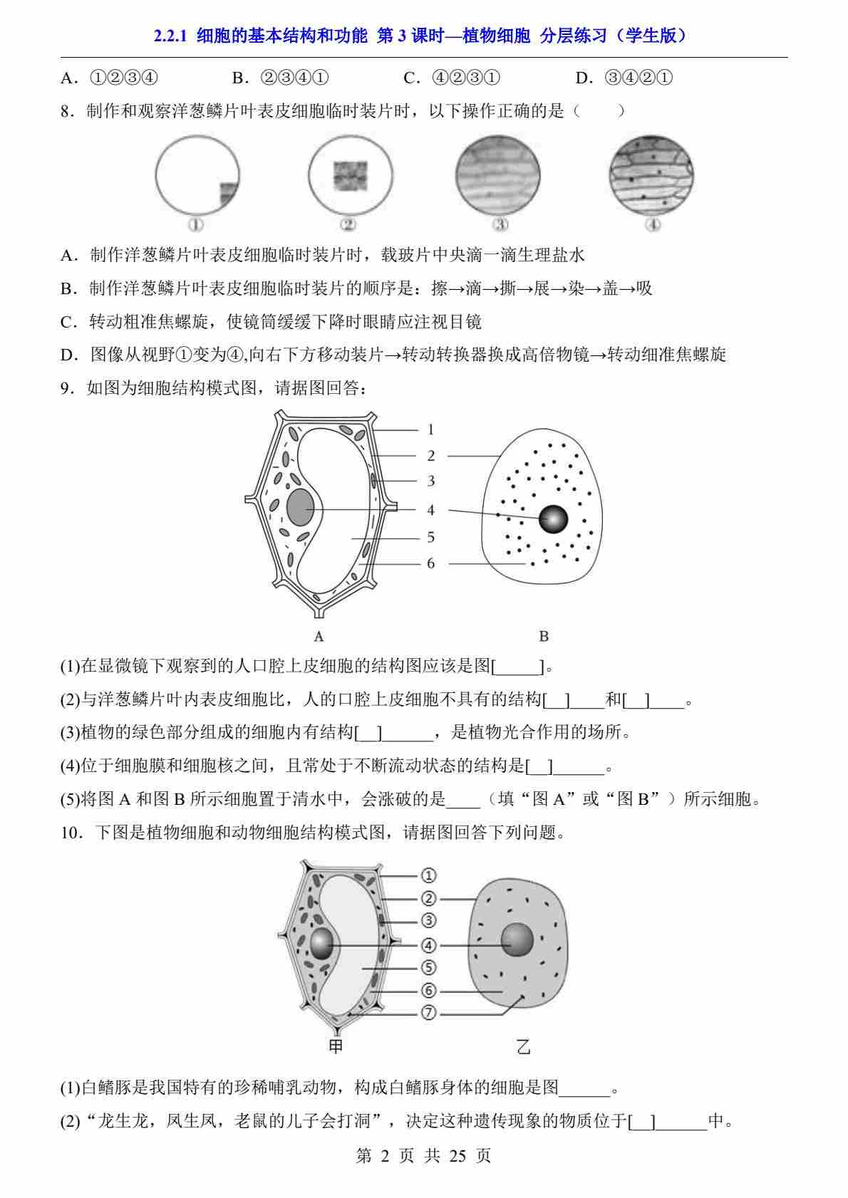2.2.1.3 植物细胞(分层练习)