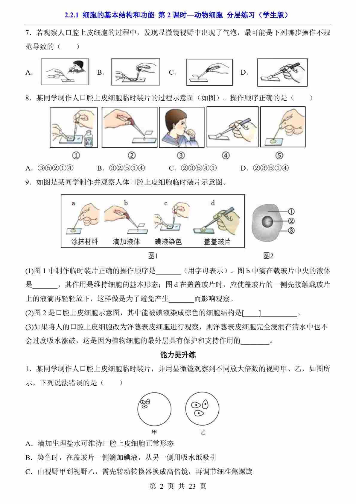 首页 > 全部 > 一课一练 > 2.2.1.2 动物细胞(分层练习)