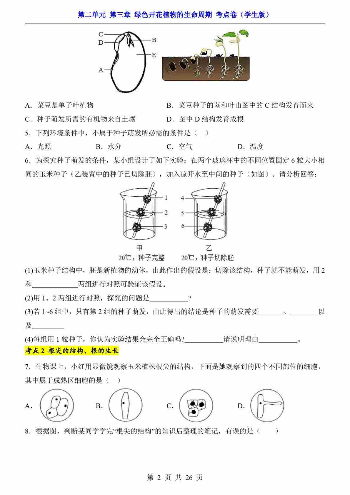首页 > 全部 > 单元测试 > 第2单元 第3章 绿色开花植物的生命周期(考点卷)