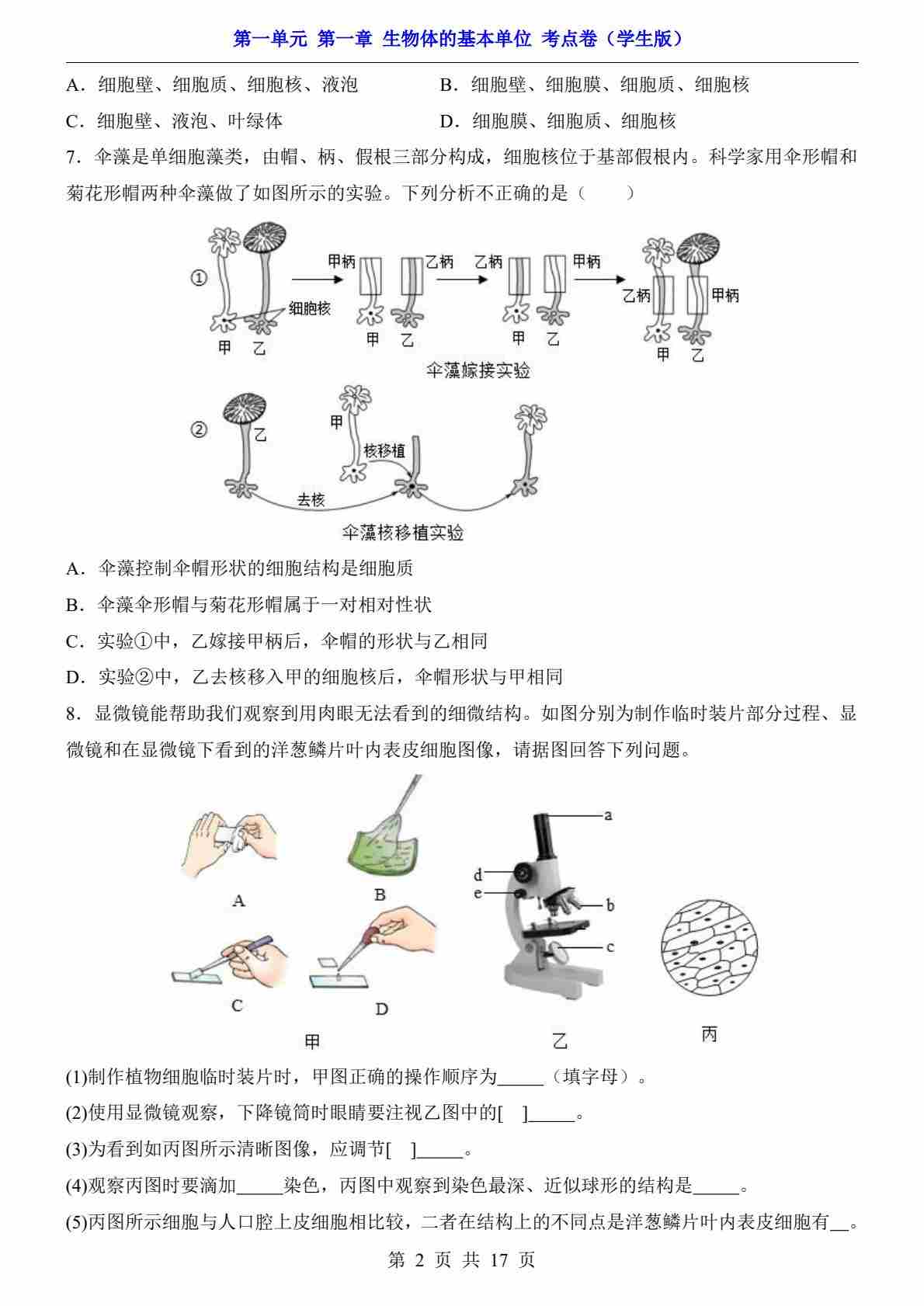 首页 > 全部 > 单元测试 > 第1单元 第1章 生物体的基本单位(考点卷)