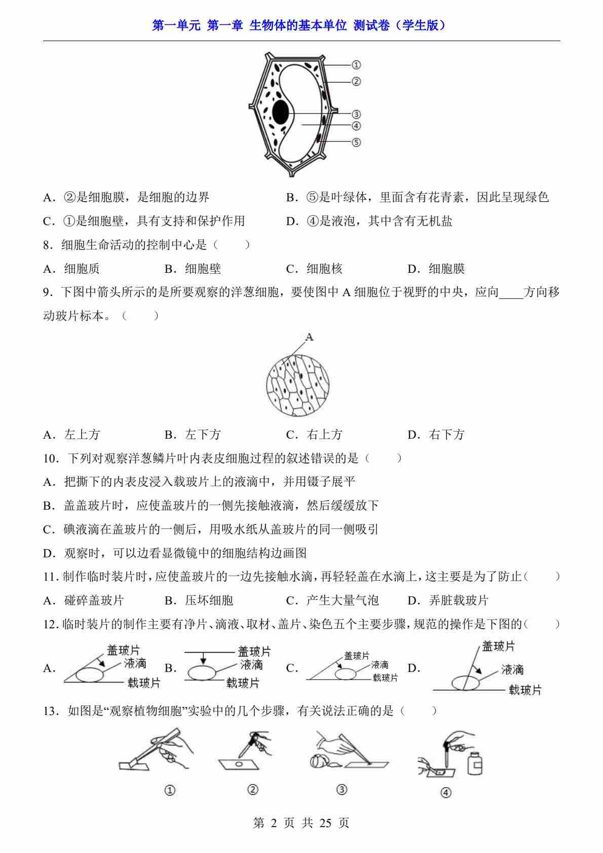 首页 > 全部 > 单元测试 > 第1单元 第1章 生物体的基本单位(测试卷)