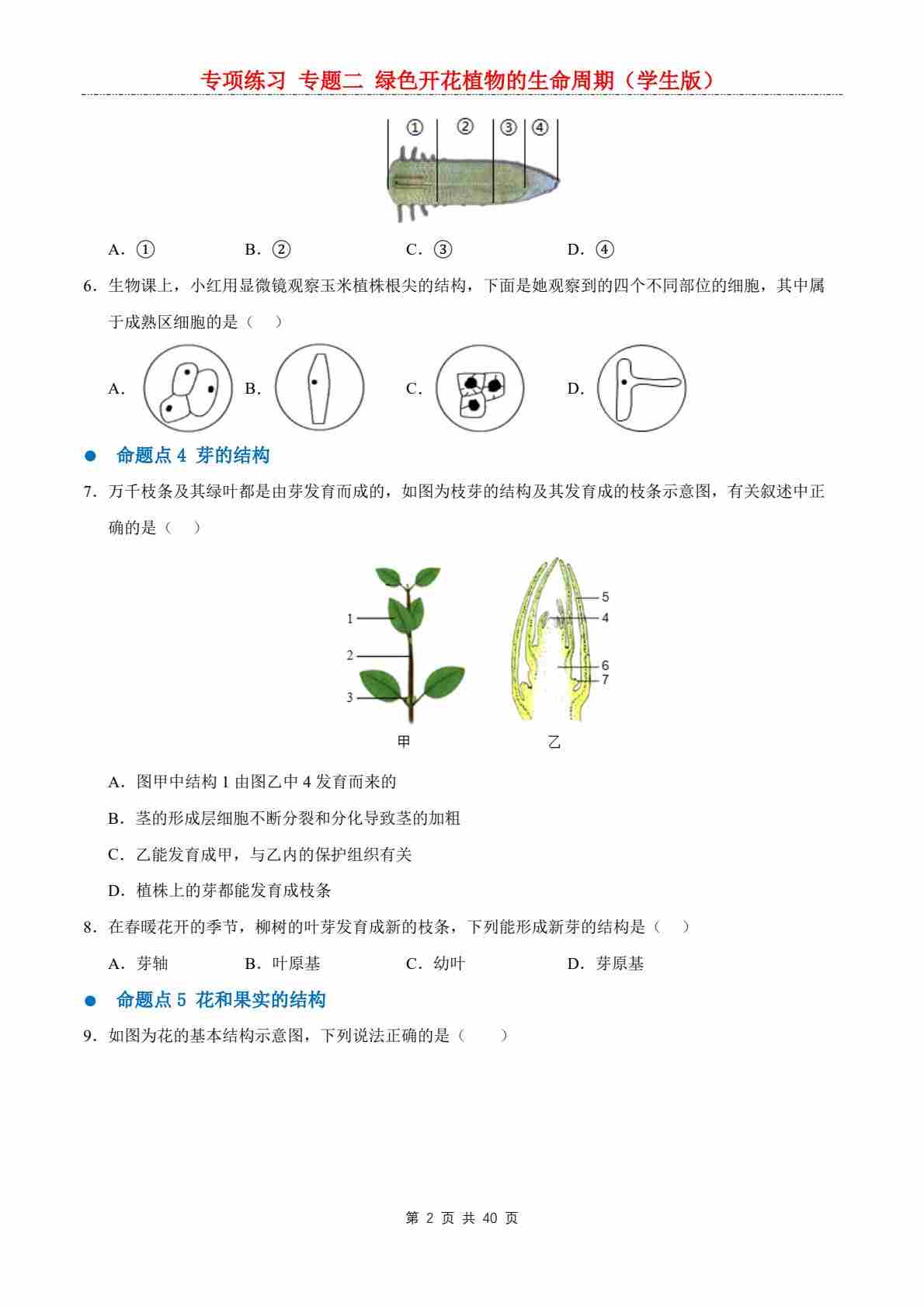 首页 > 全部 > 期末专项 > 【专项练习】专题二 绿色开花植物的生命周期
