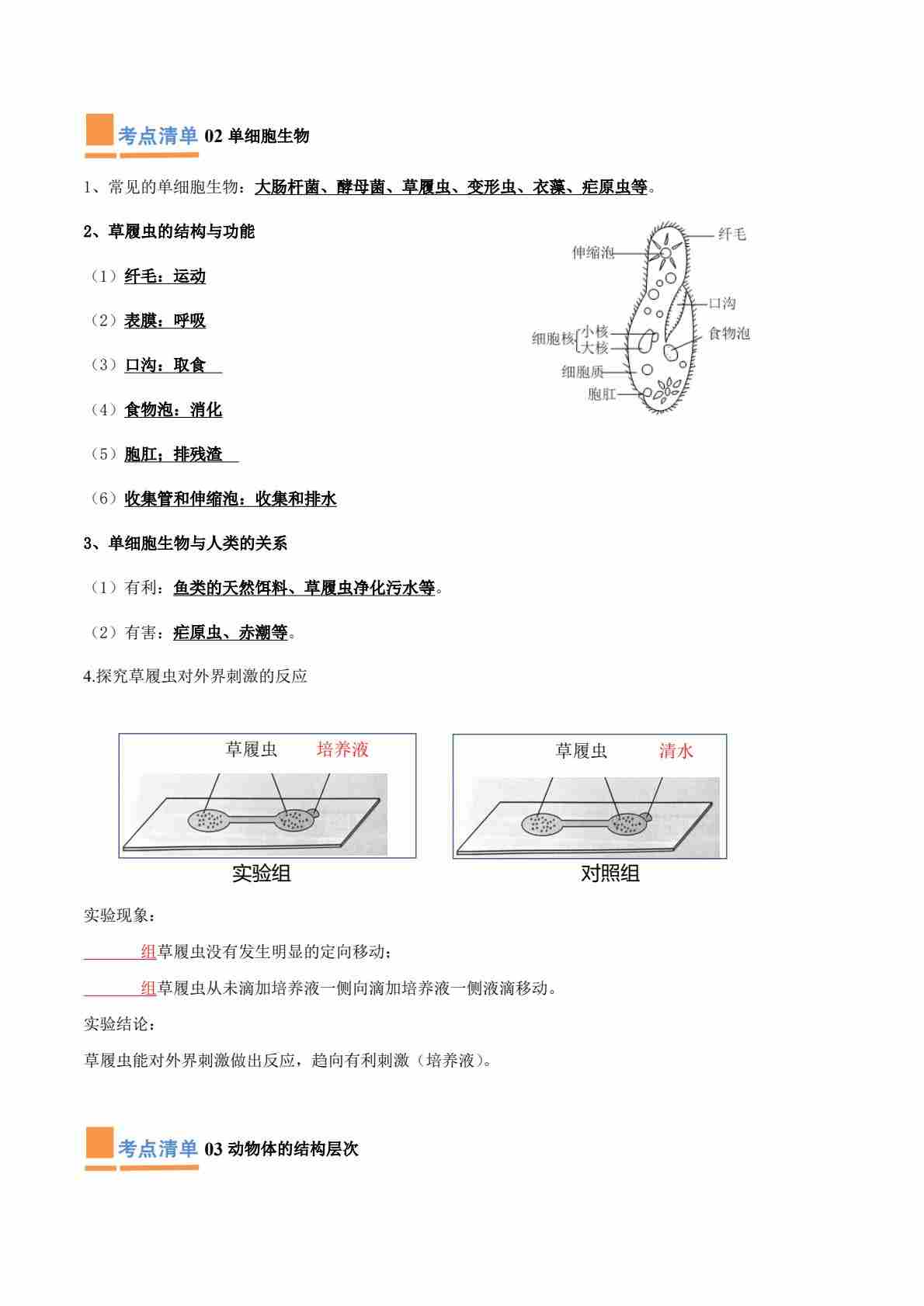 首页 > 全部 > 期中专项 > 【知识清单】第2章 生物体的结构(4大考点必背)(原卷版)