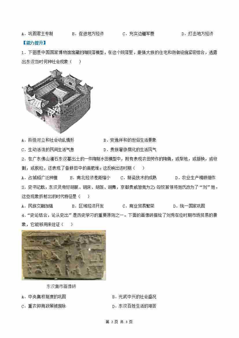 第13课 东汉的兴衰(分层作业)(原卷版)