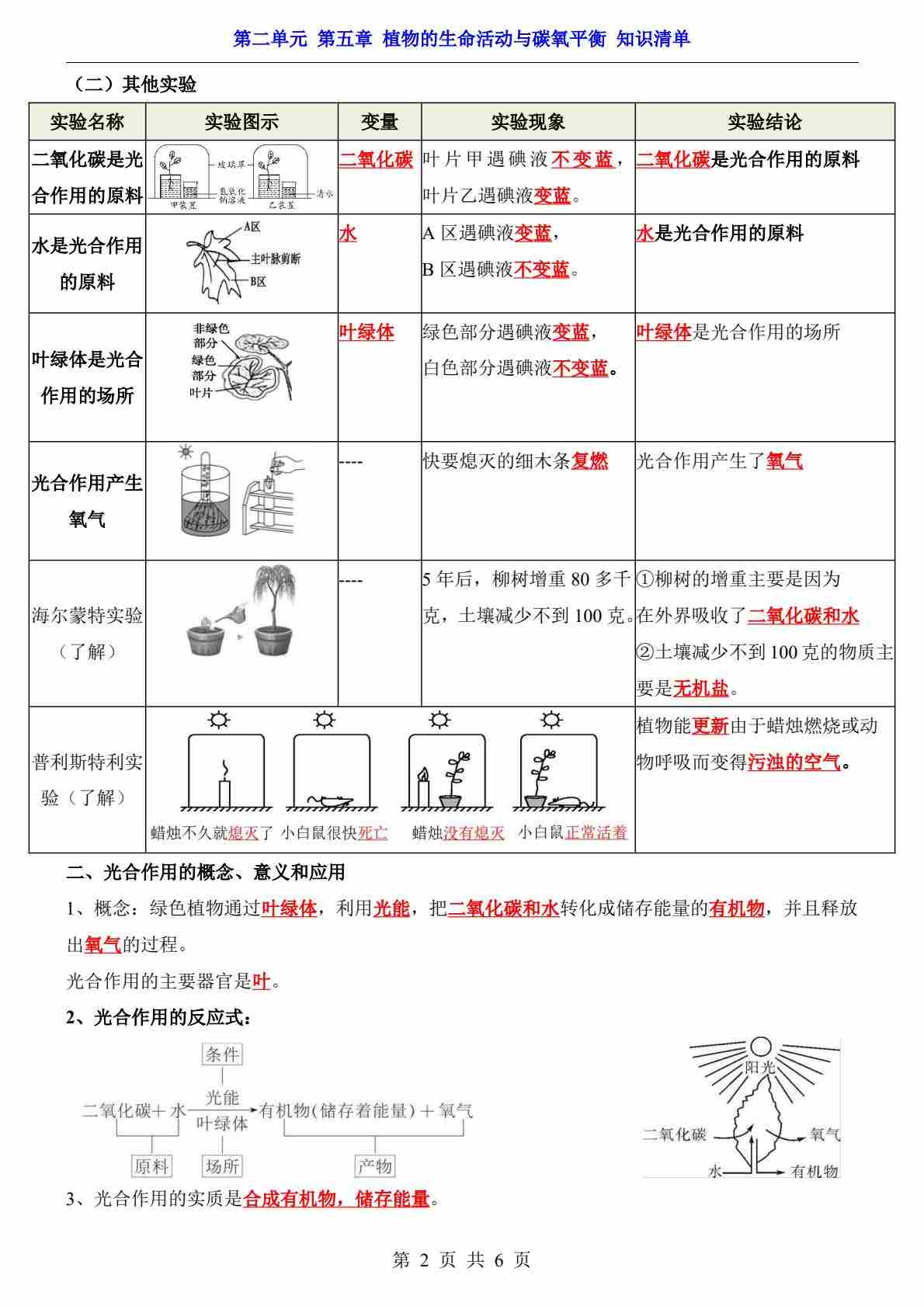 第2单元 第5章 植物的生命活动与碳氧平衡(知识清单)