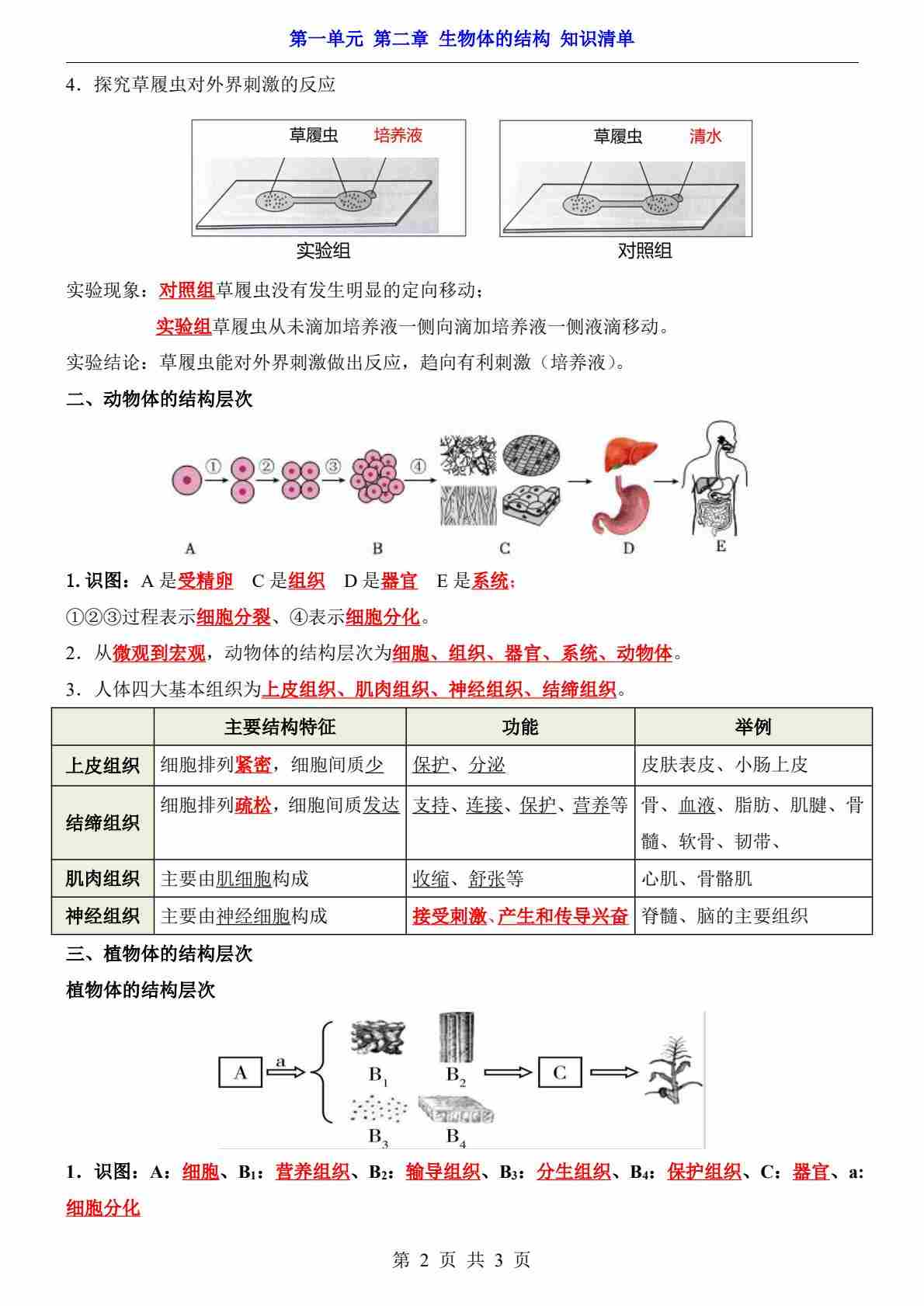 首页 > 全部 > 知识梳理 > 第1单元 第2章 生物体的结构(知识清单)