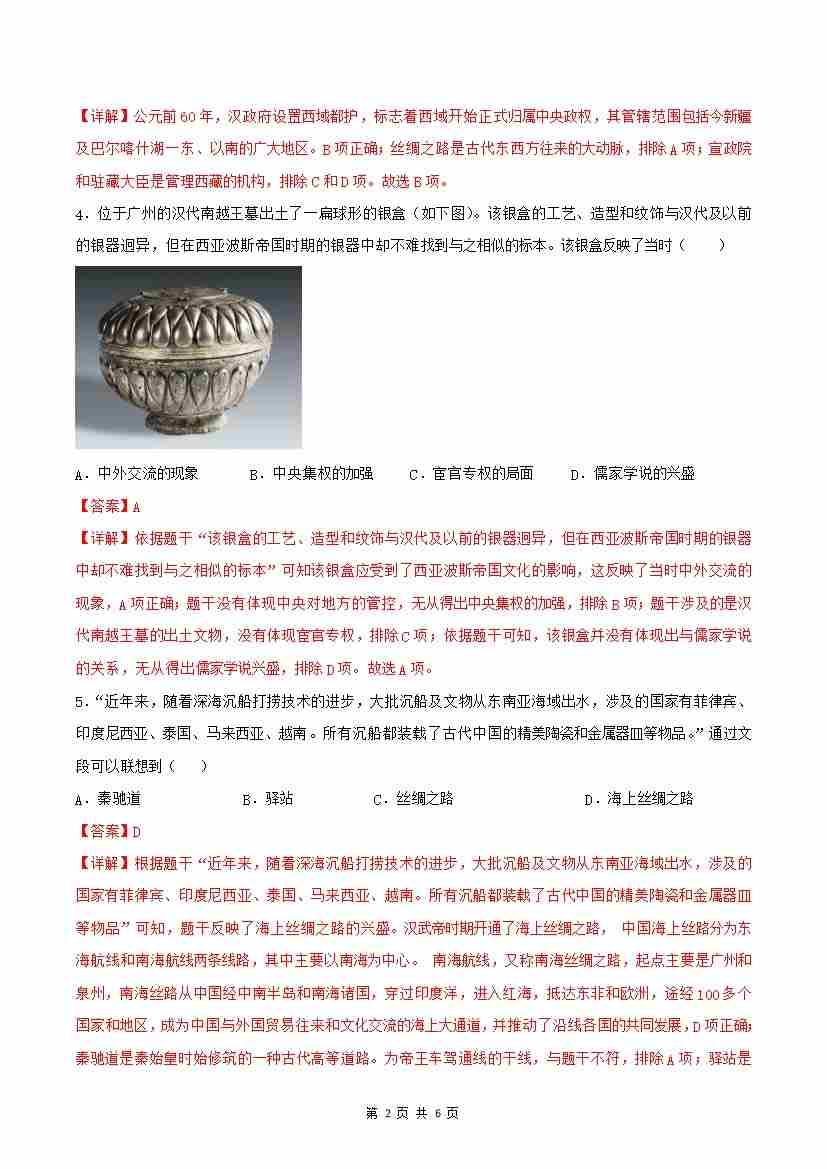首页 > 全部 > 分层作业 > 第14课 丝绸之路的开通与经营西域(分层作业)(解析版)