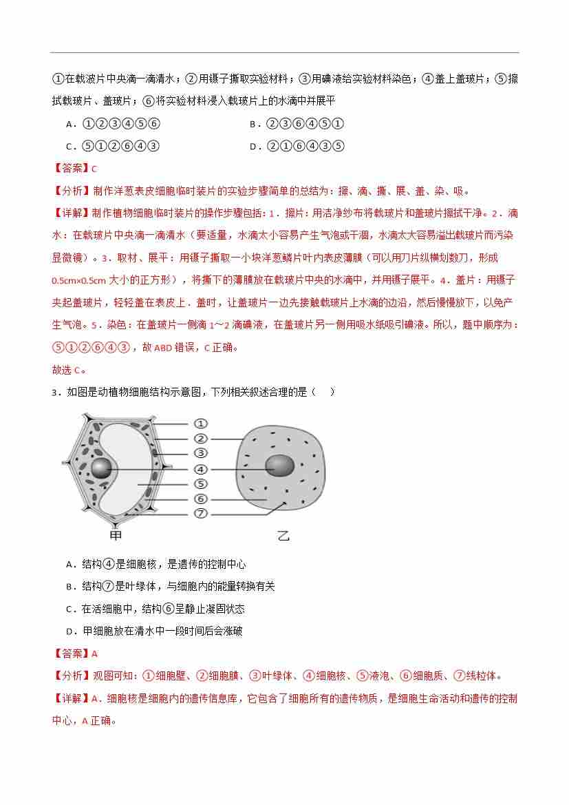 首页 > 全部 > 单元检测 > 第一单元第2章 生物体具有一定的结构层次【单元测试卷】(解析版)