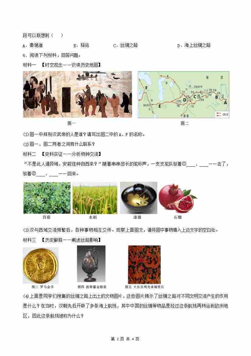 首页 > 全部 > 分层作业 > 第14课 丝绸之路的开通与经营西域(分层作业)(原卷版)