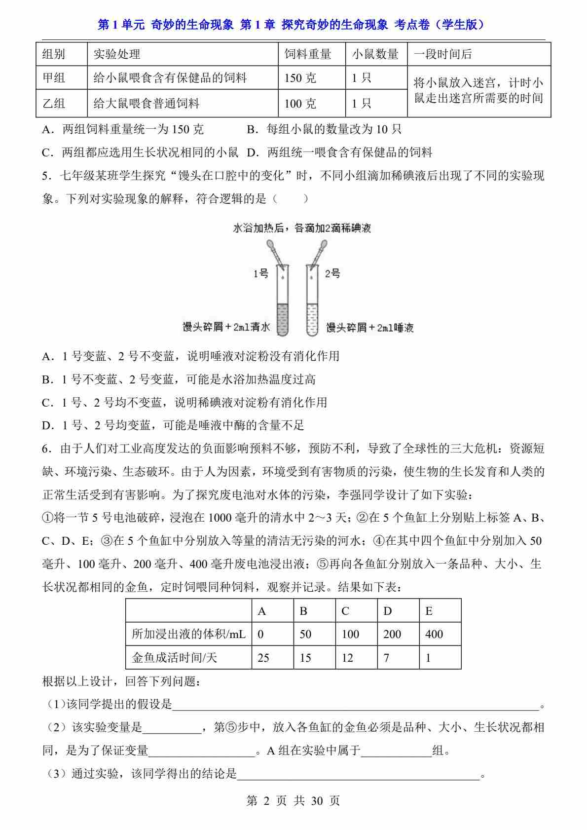 首页 > 全部 > 单元检测 > 第1单元 第1章 探究奇妙的生命现象(考点卷)