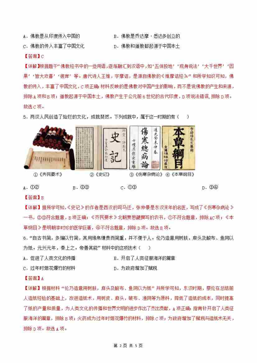 首页 > 全部 > 分层作业 > 第15课 秦汉时期的科技与文化(分层作业)(解析版)