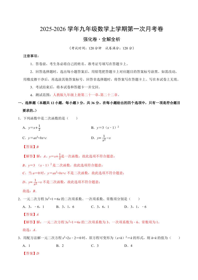 首页 > 全部 > 第一次月考 > 九年级数学上学期第一次月考(人教版,高效培优·强化卷)(全解全析)