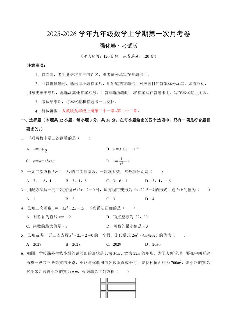 首页 > 全部 > 第一次月考 > 九年级数学上学期第一次月考(人教版第21~22章,高效培优·强化卷)(考试版A4)