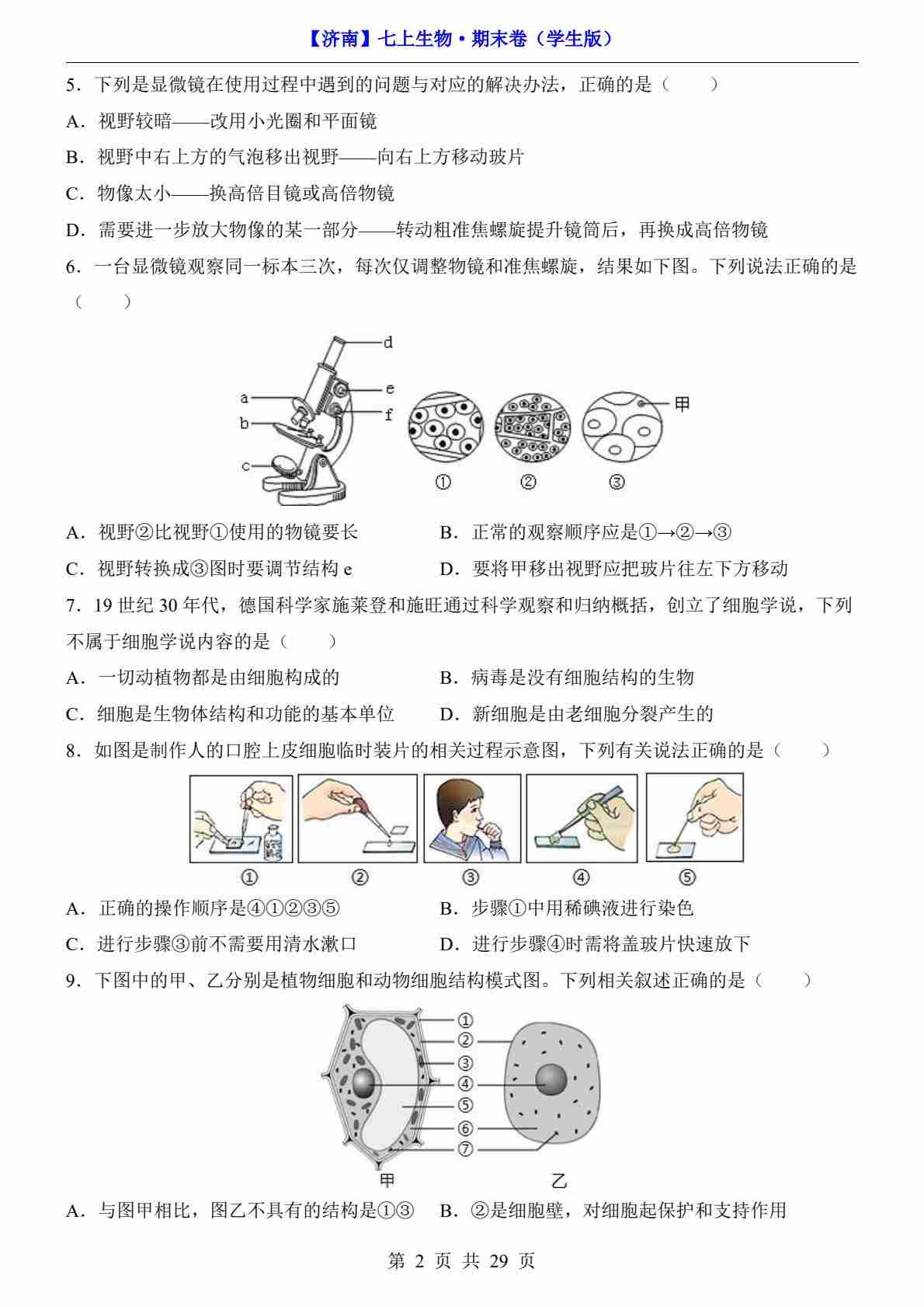 首页 > 全部 > 期末试卷 > 【济南】7上生物期末卷【七上全册】