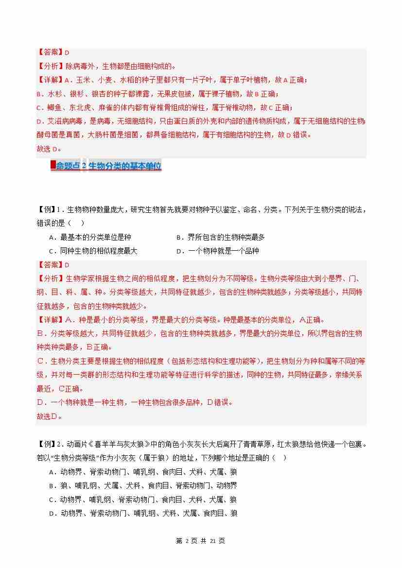 首页 > 全部 > 期末专项 > 专题6 科学分类有助于认识和研究生物(解析版)