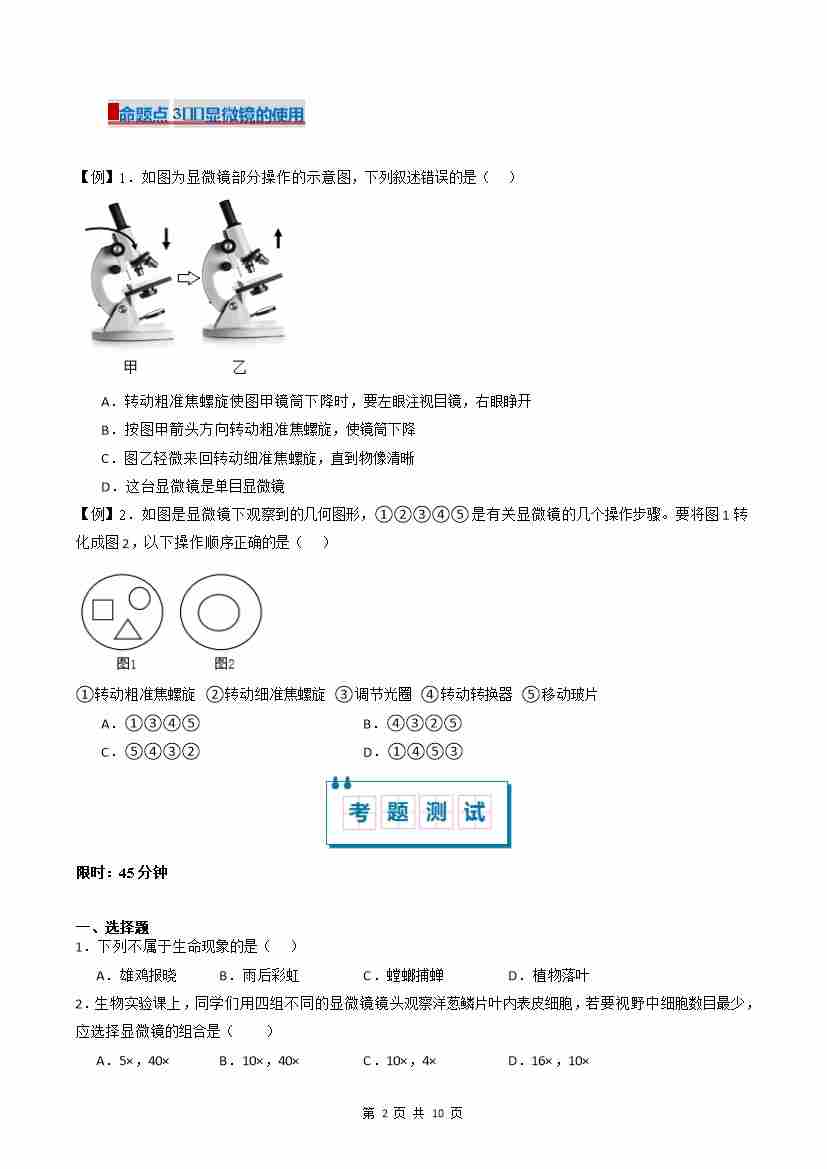 首页 > 全部 > 期末专项 > 专题1 探究奇妙的生命现象(原卷版)