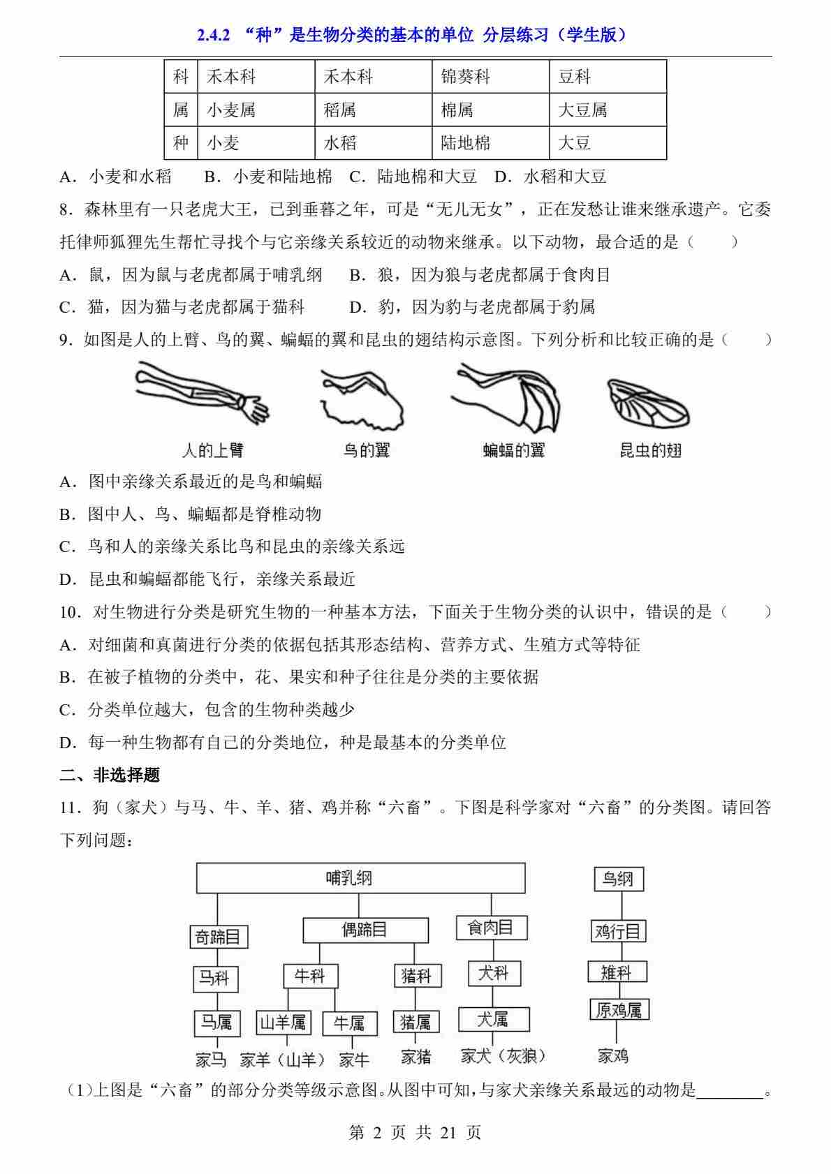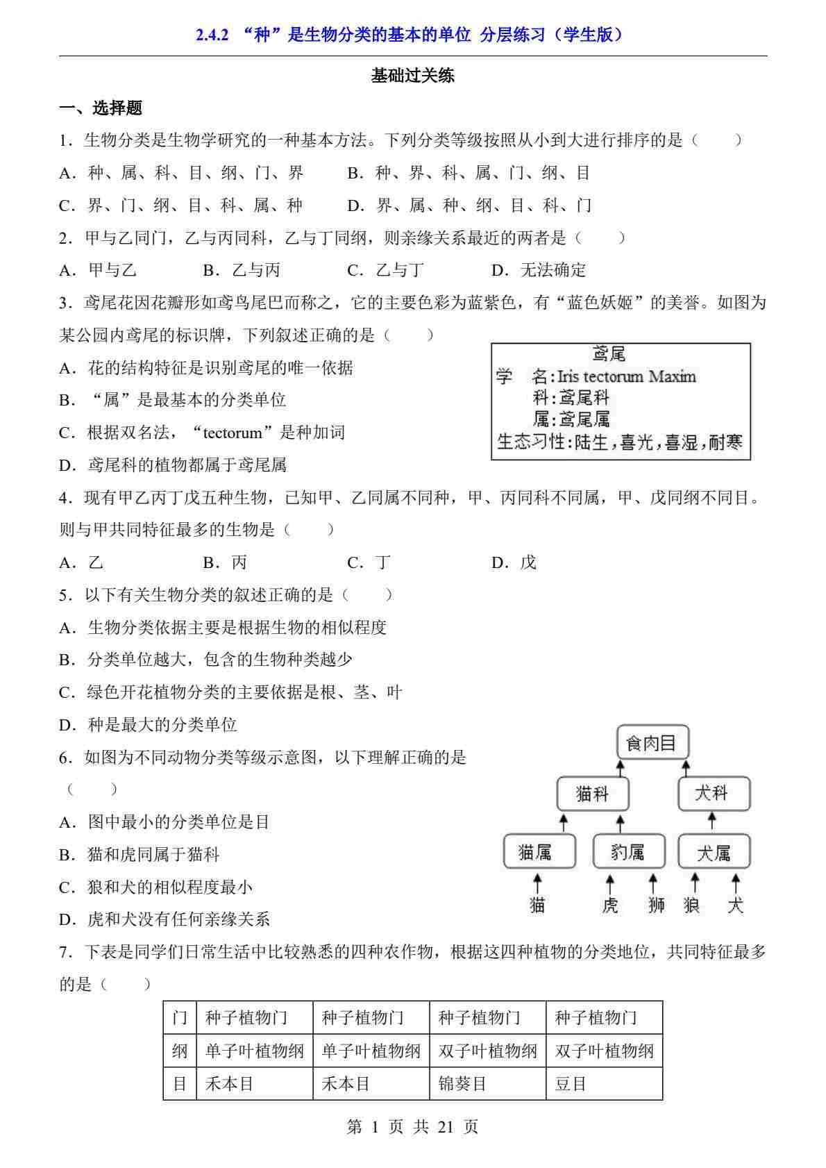 2.4.2 “种”是生物分类的基本的单位(分层练习)