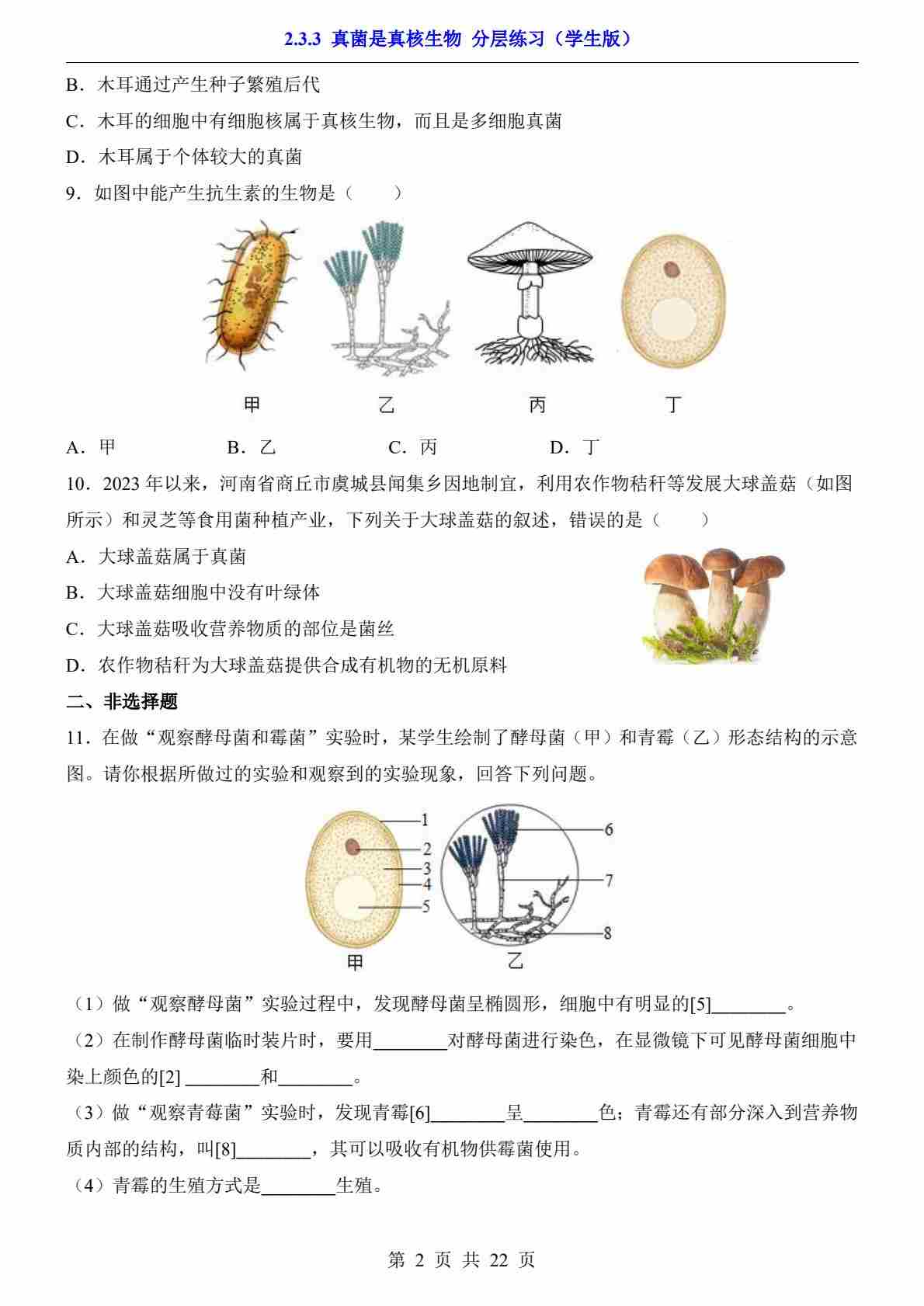 2.3.3 真菌是真核生物(分层练习)