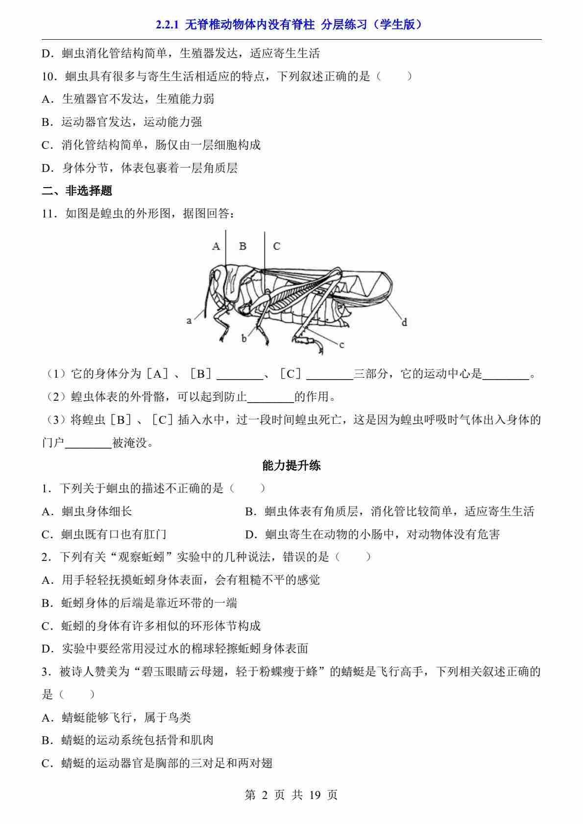 2.2.1 无脊椎动物体内没有脊柱(分层练习)