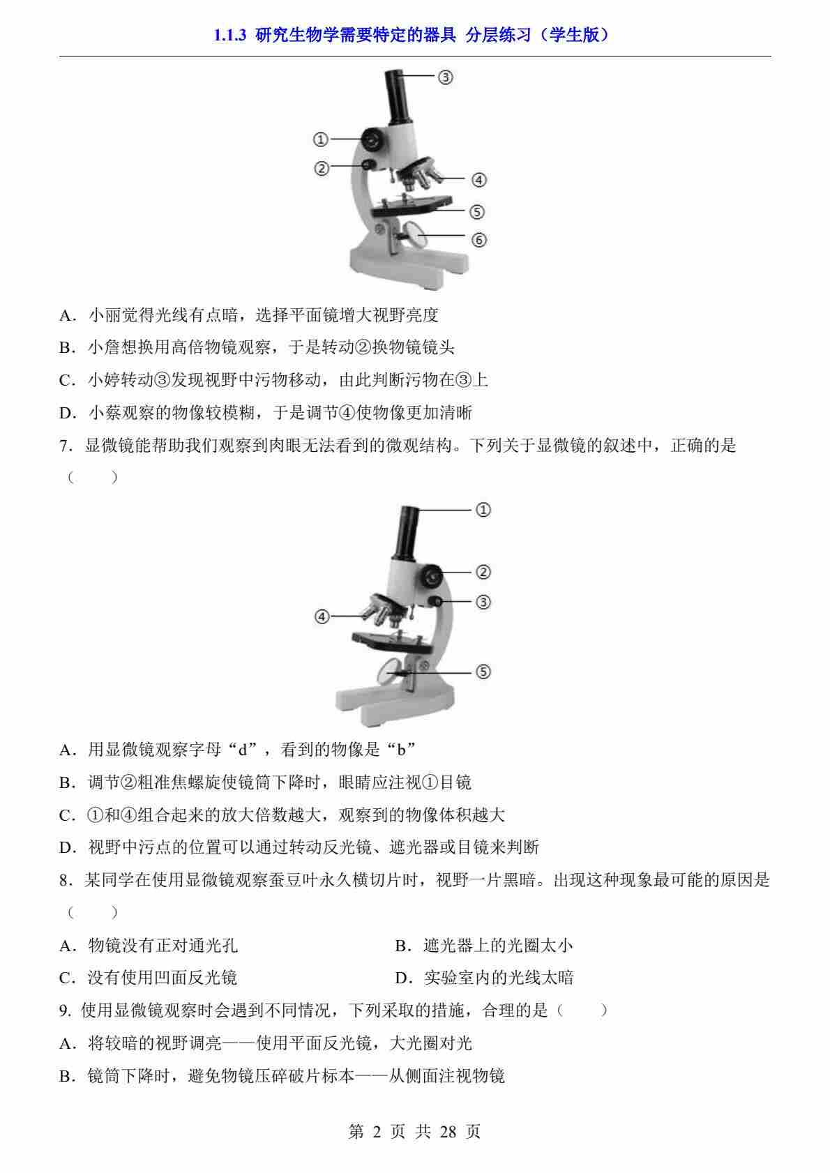 1.1.3 研究生物学需要特定的器具(分层练习)
