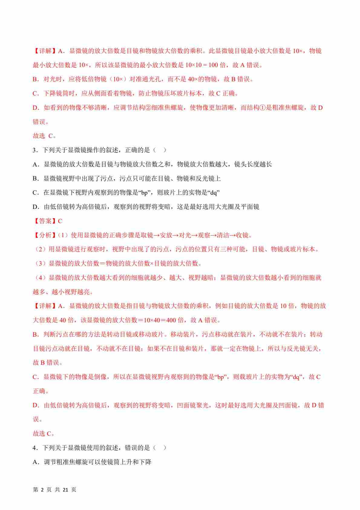 首页 > 全部 > 一课一练 > 1.1.3 研究生物学需要特定的器具(分层练习)(解析版)