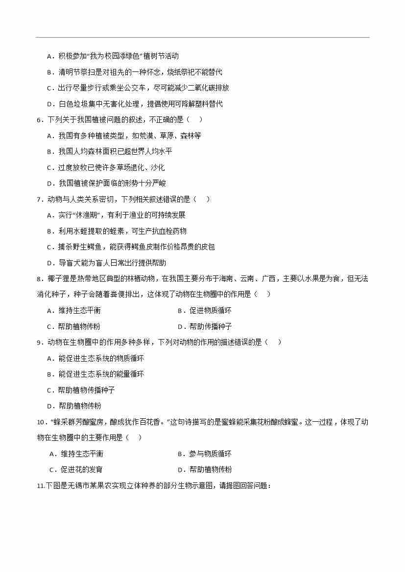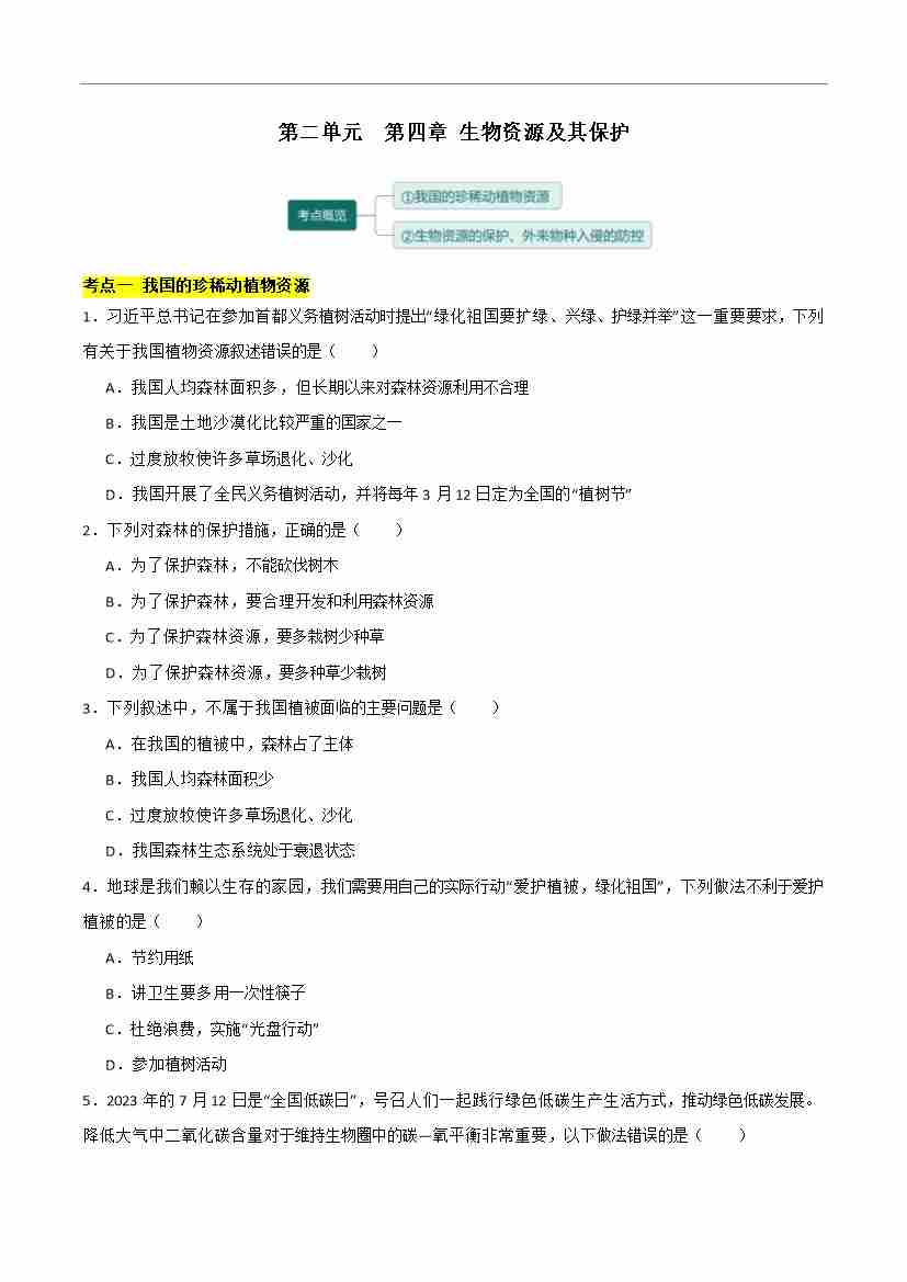 首页 > 全部 > 考点提升卷 > 第二单元第四章 生物资源及其保护【单元卷·考点卷】(原卷版)-七年级生物上册(冀少版2024)