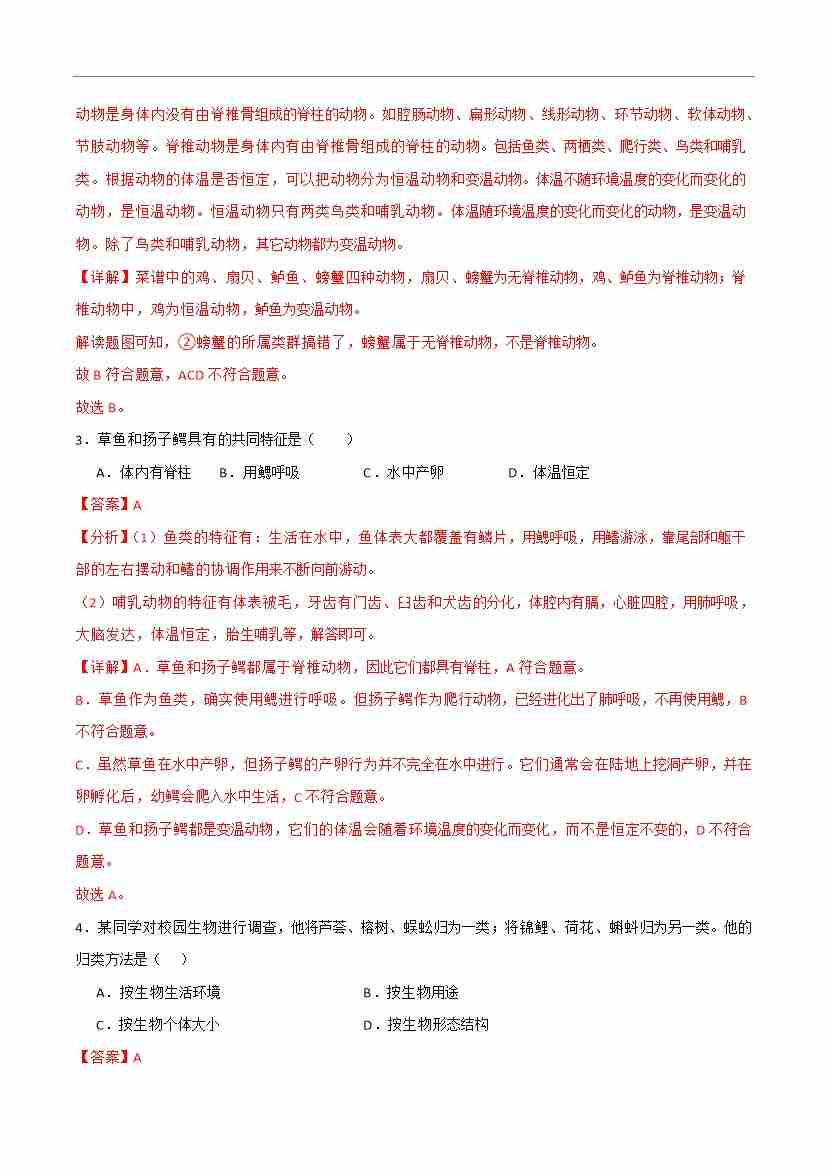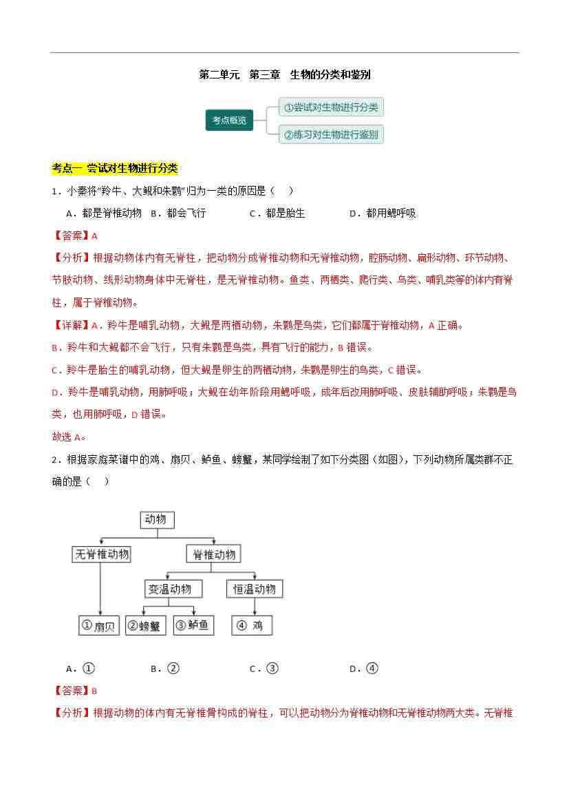 首页 > 全部 > 考点提升卷 > 第二单元第三章 生物的分类和鉴别【单元卷·考点卷】(解析版)-七年级生物上册(冀少版2024)