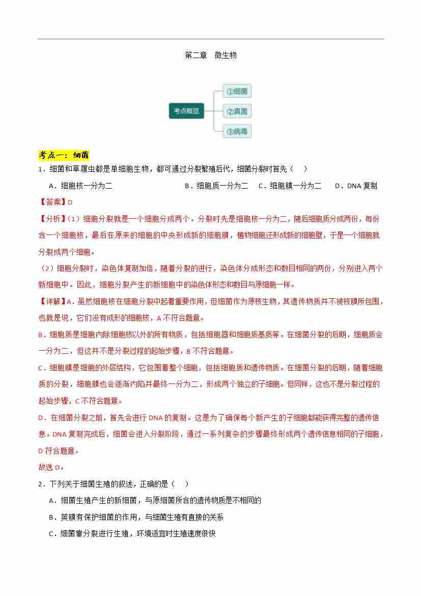 首页 > 全部 > 考点提升卷 > 第二单元第二章 微生物【单元卷·考点卷】(解析版)-七年级生物上册(冀少版2024)