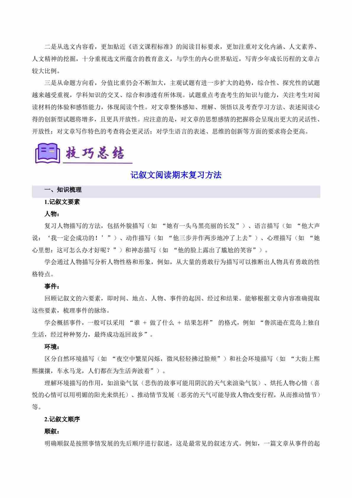 首页 > 全部 > 期末专项题 > 专题07 记叙文阅读(十大考点答题模板)(考点清单)-2024-2025学年七年级语文上学期期末考点大串讲(统编版2024)