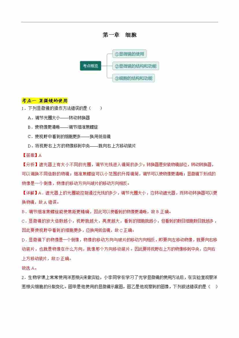 首页 > 全部 > 考点提升卷 > 第一章 细胞【单元卷·考点卷】(解析版)-七年级生物上册(冀少版2024)