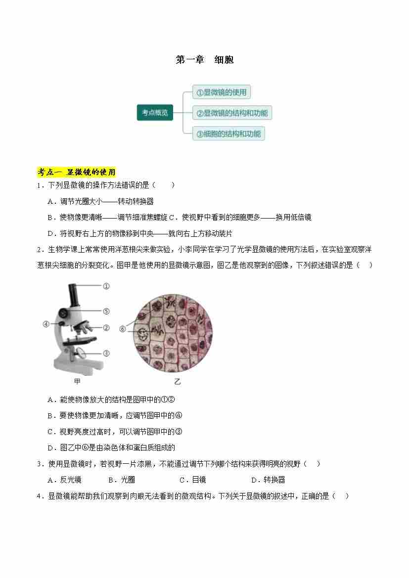 首页 > 全部 > 考点提升卷 > 第一章 细胞【单元卷·考点卷】(原卷版)-七年级生物上册(冀少版2024)