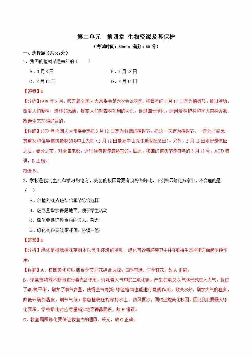 首页 > 全部 > 能力达标卷 > 第二单元第四章 生物资源及其保护【单元卷·测试卷】(解析版)-七年级生物上册(冀少版2024)