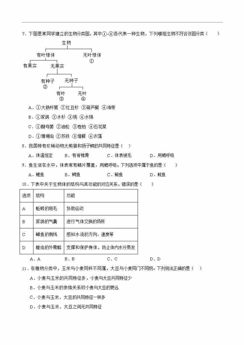 首页 > 全部 > 能力达标卷 > 第二单元第三章 生物的分类和鉴别【单元卷·测试卷】(原卷版)-七年级生物上册(冀少版2024)