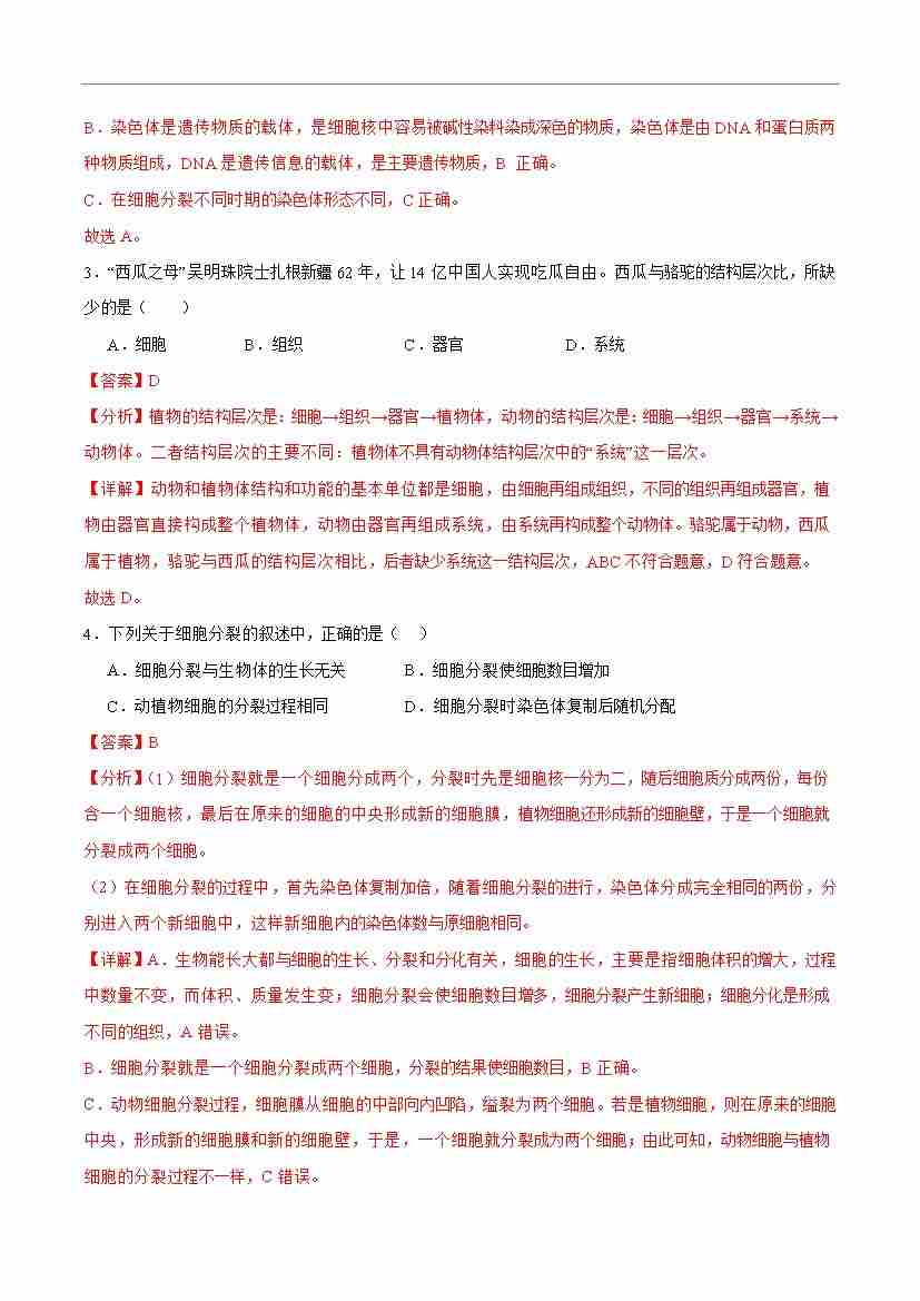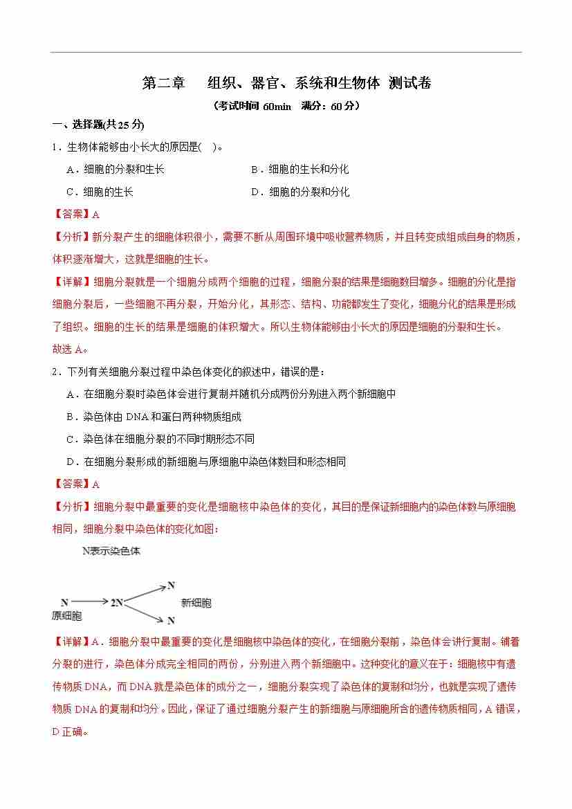 首页 > 全部 > 能力达标卷 > 第二章 组织、器官、系统和生物体【单元卷·测试卷】(解析版)-七年级生物上册(冀少版2024)