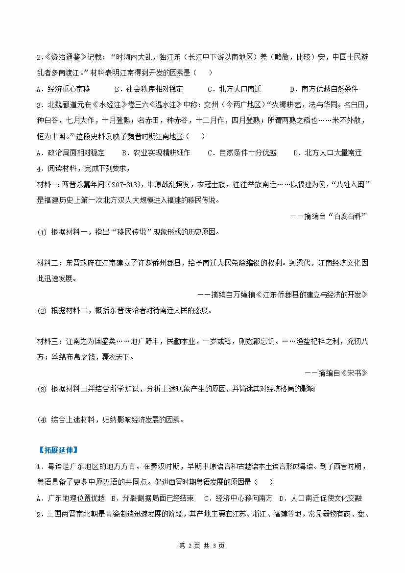 首页 > 全部 > 分层作业 > 第18课 东晋南朝政治和江南地区开发(分层作业)(原卷版)