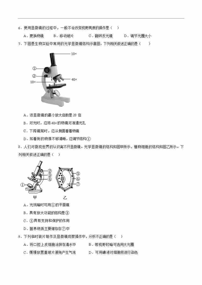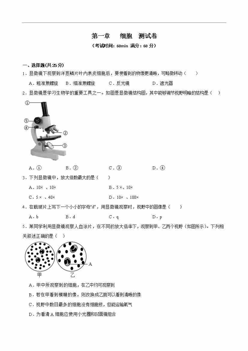 首页 > 全部 > 能力达标卷 > 第一单元第一章 细胞【单元卷·测试卷】(原卷版)-七年级生物上册(冀少版2024)