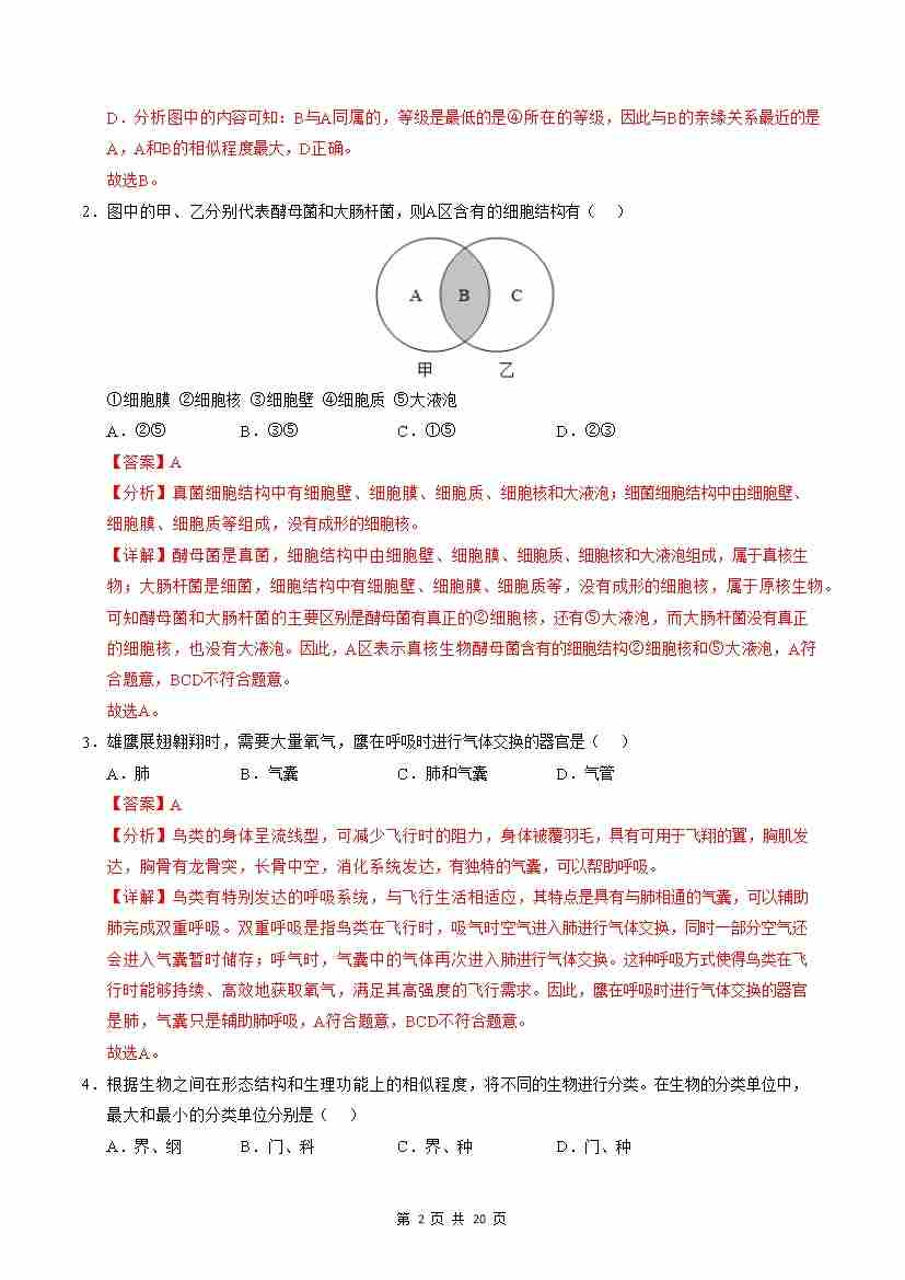 首页 > 全部 > 期末试卷 > 七年级生物期末模拟卷(全解全析)(冀少版)
