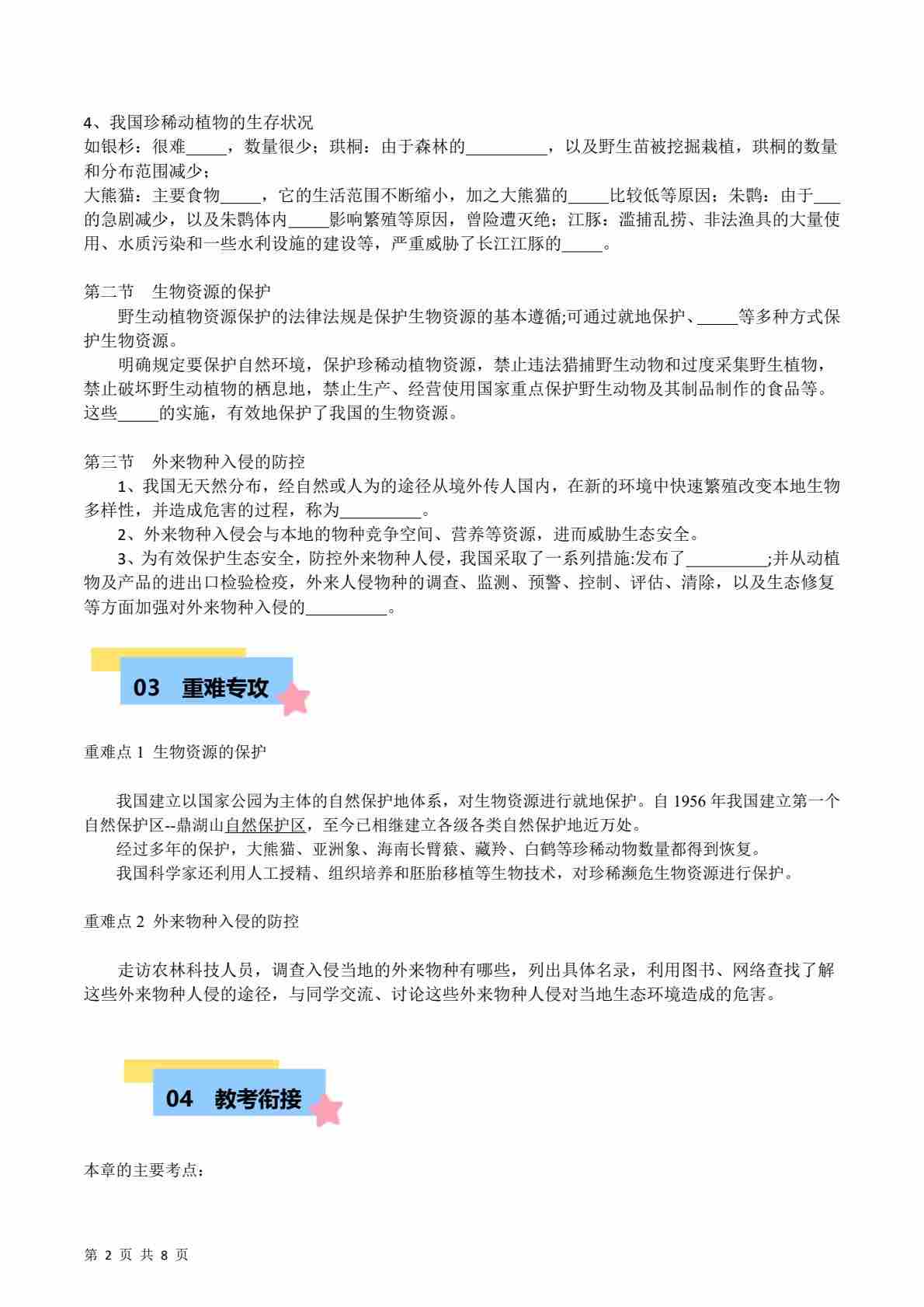 首页 > 全部 > 速记清单 > 【6】第二单元第四章 生物资源及其保护【速记清单】(原卷版)