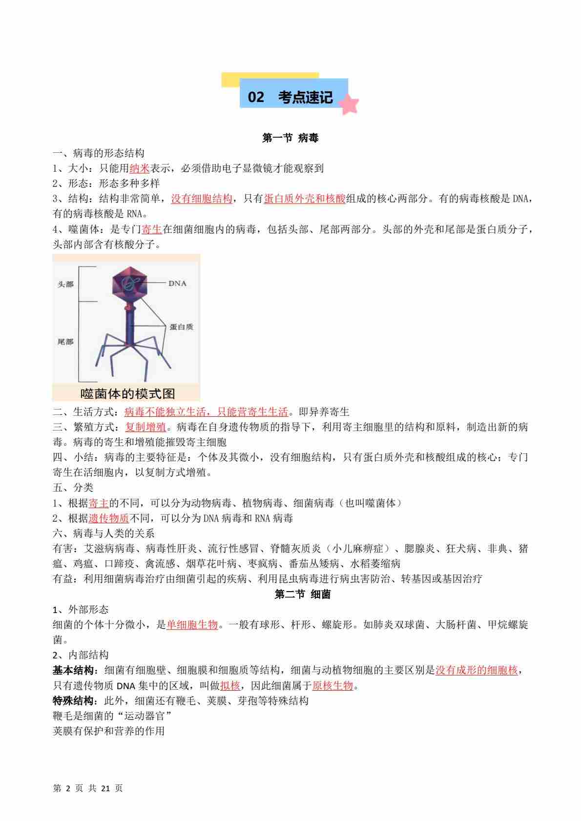 首页 > 全部 > 速记清单 > 【4】第二单元第二章 微生物【速记清单】(解析版)