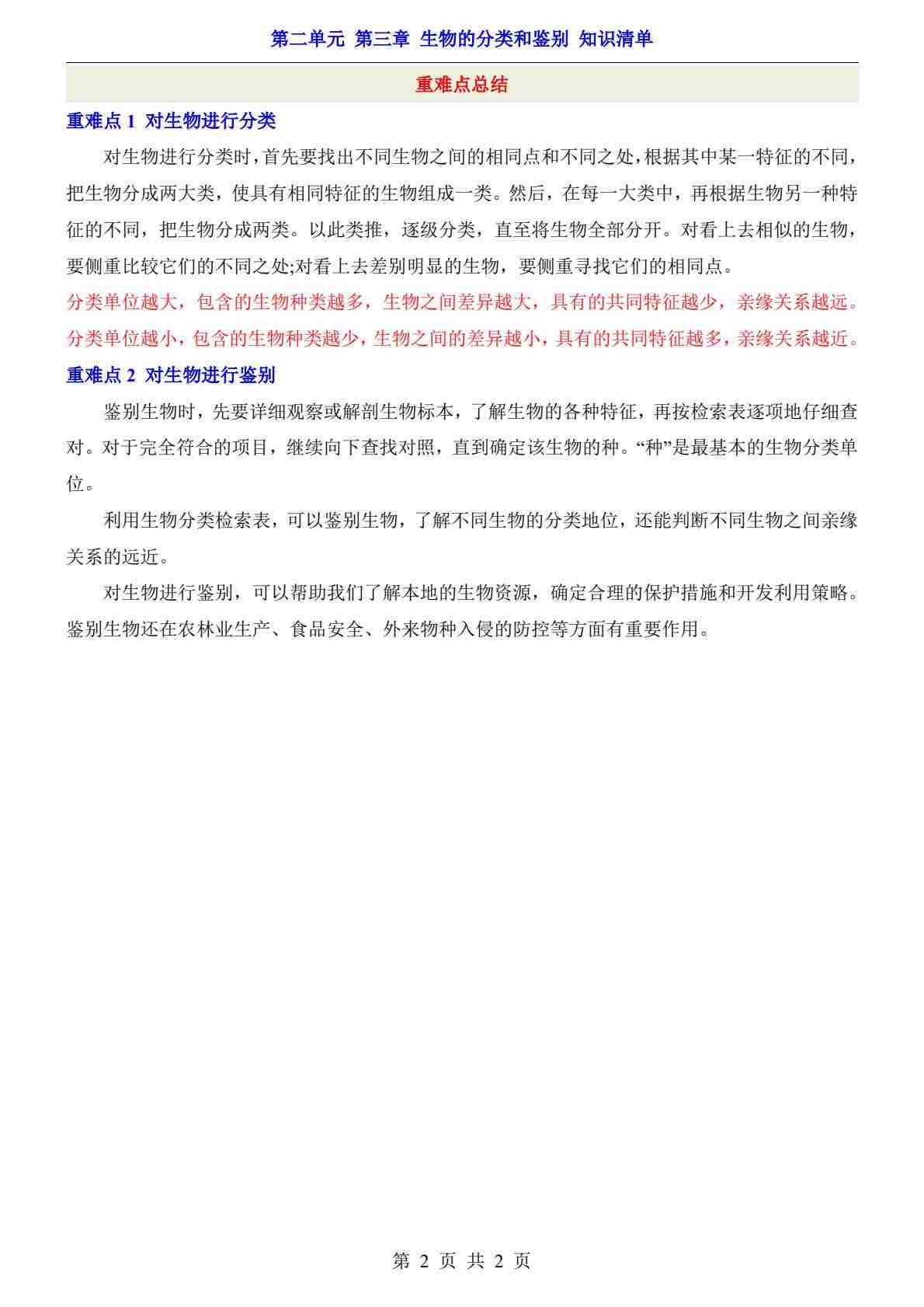 第2单元 第3章 生物的分类和鉴别(知识清单)